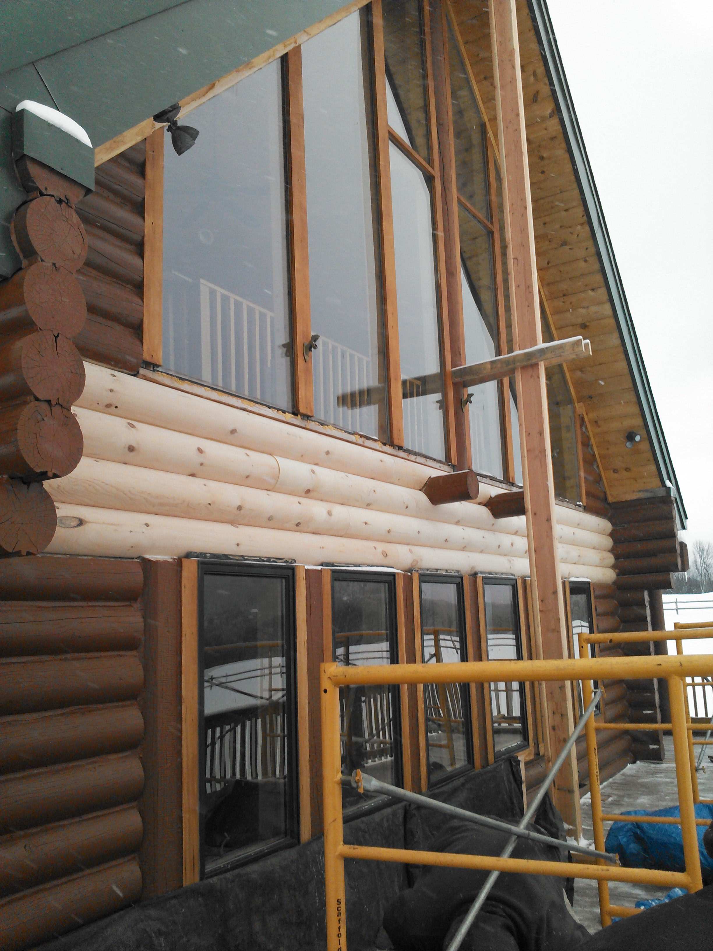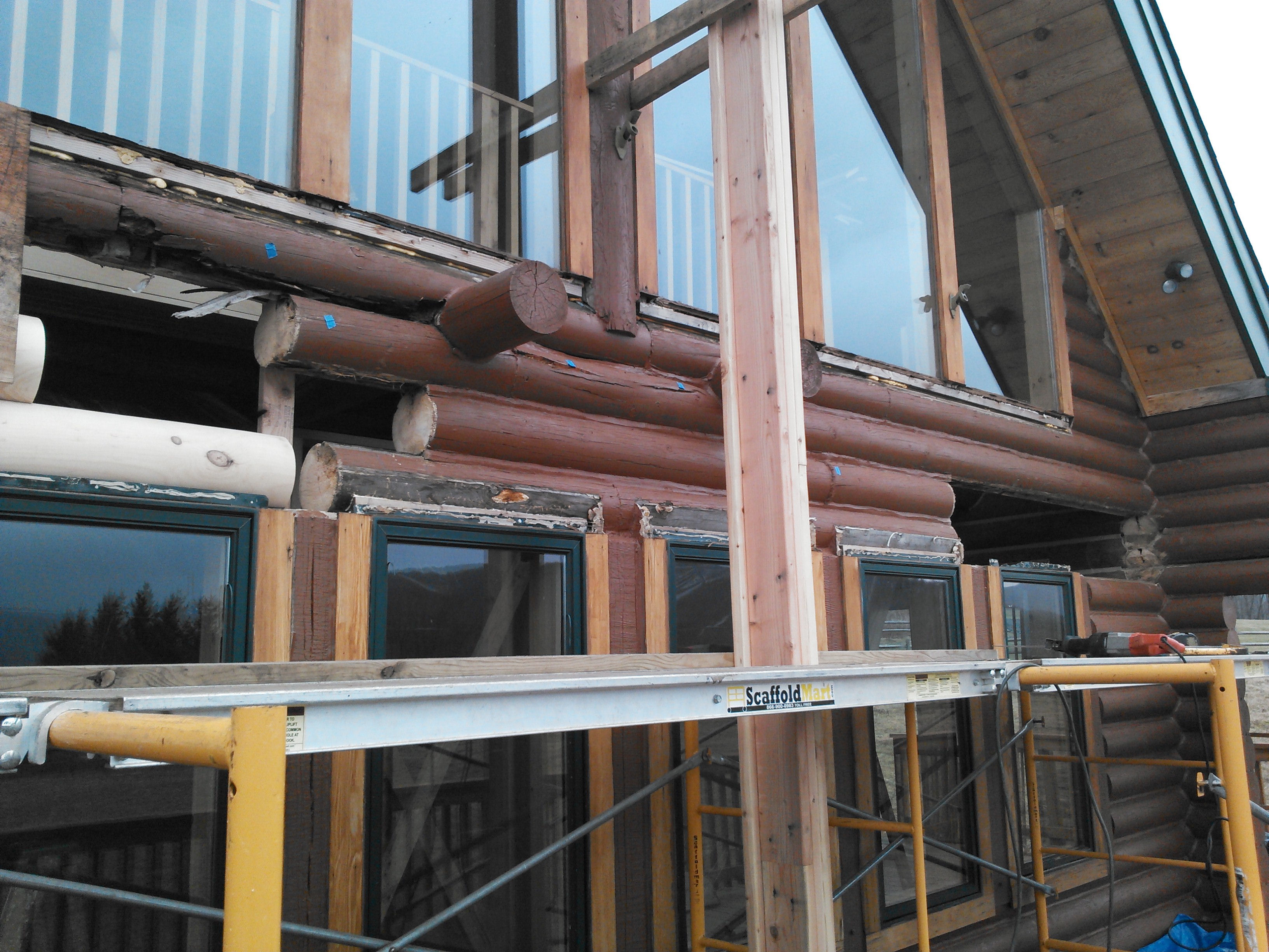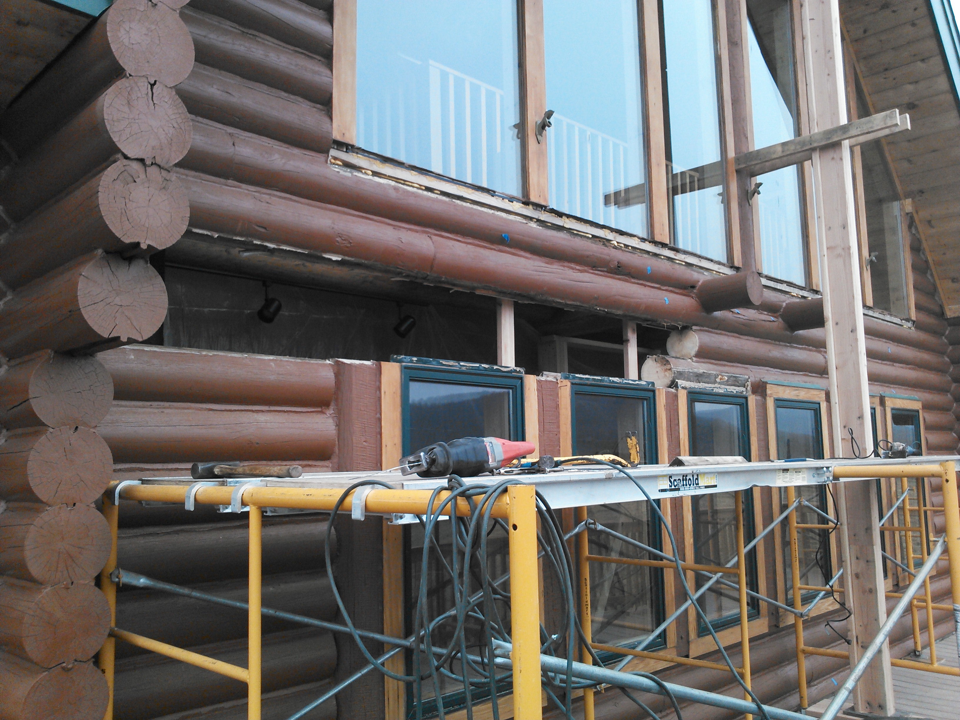 Large A-Frame Log Home Having Rotted Logs Repaired & Replaced